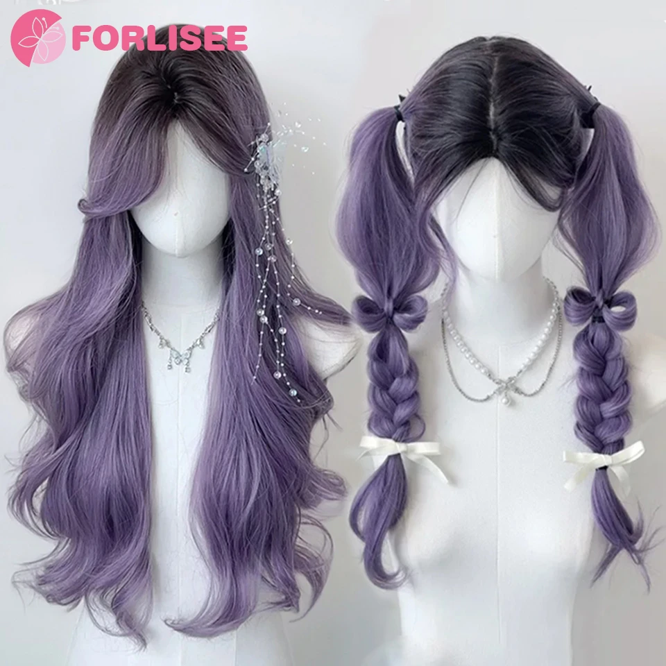 Denna långa ombre-peruk på ca 66 cm är perfekt för dig som vill skapa en magisk look med mjuka vågor och naturlig mittbena. Färgerna går i en vacker gradient från mörkare nyanser till ljusare lila, vilket gör att peruken känns både levande och unik.