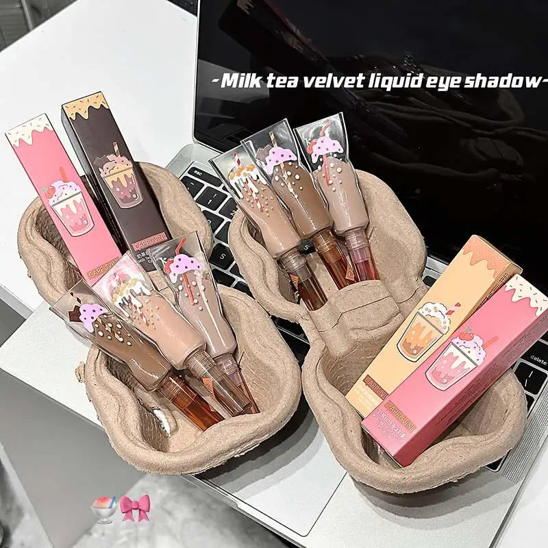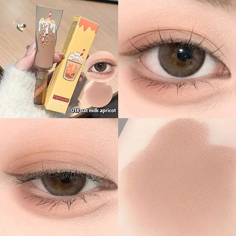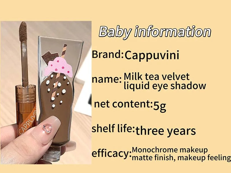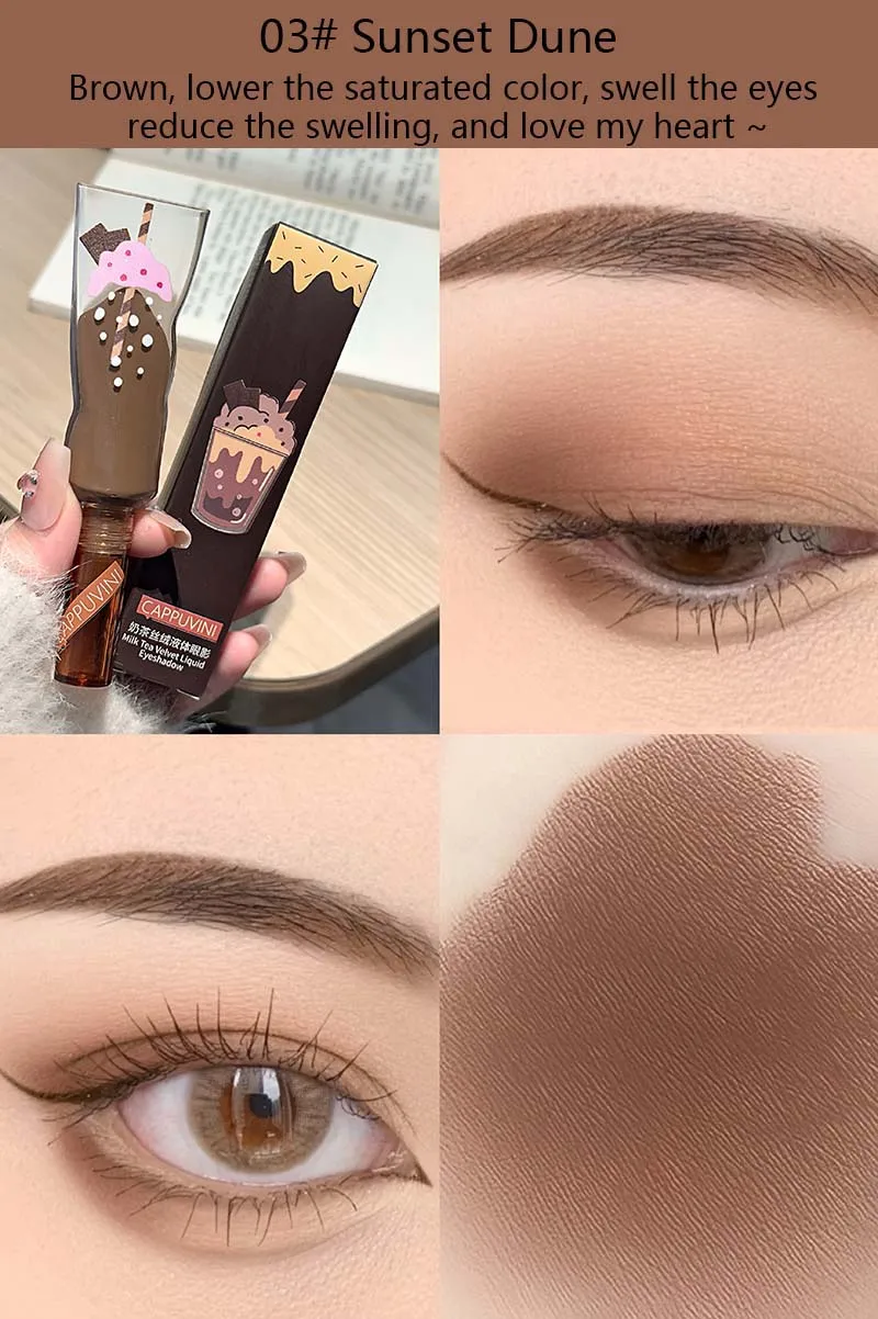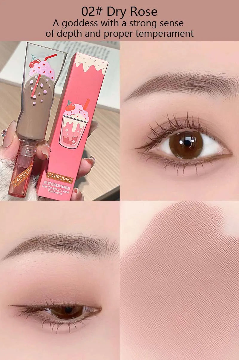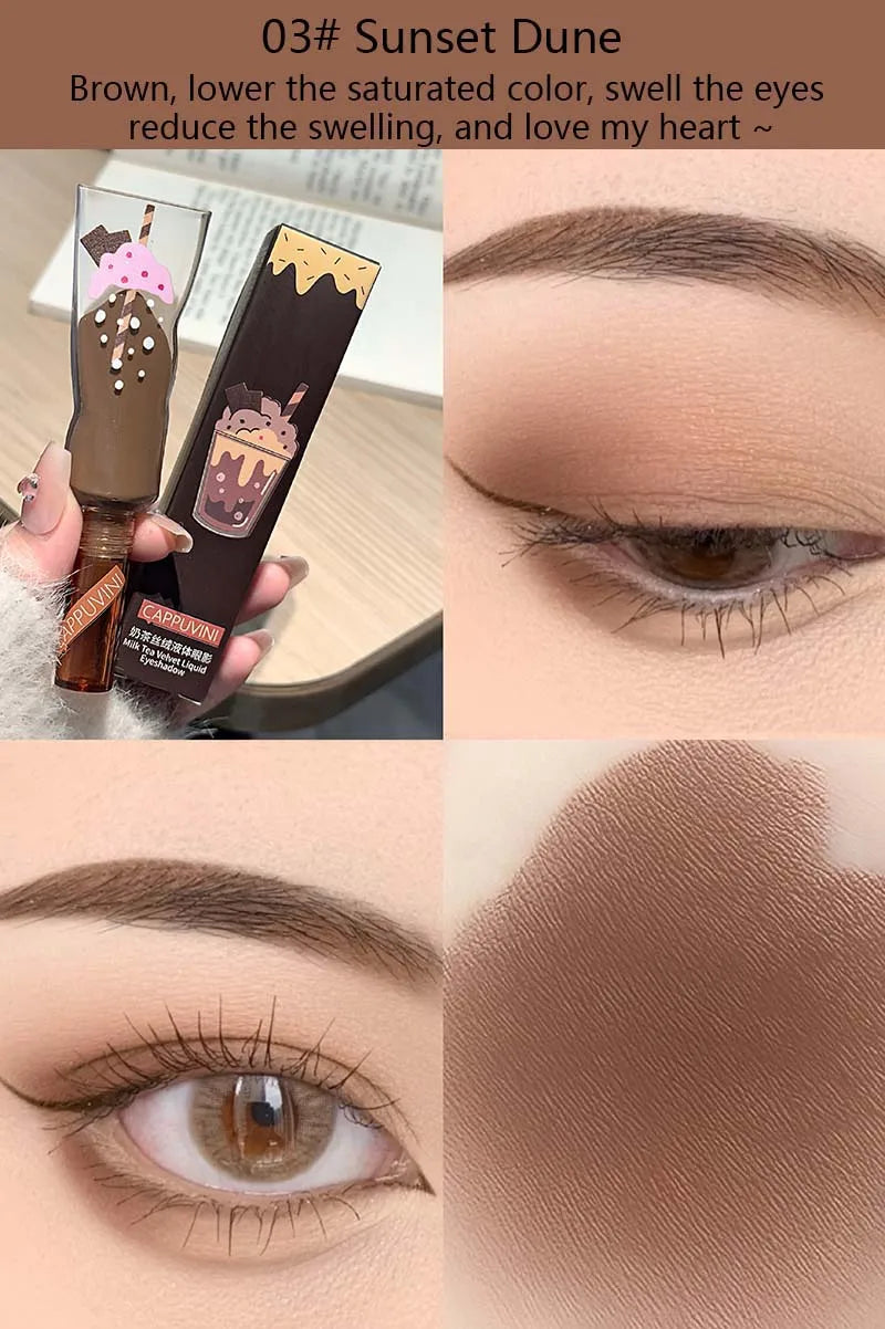 Föreställ dig att varje gång du sveper på skuggan fångas känslan av en lugn fikastund med mjölktea – enkel, söt och lite lyxig. En liten detalj som ger ögonen både värme och glow, utan att överdriva.
