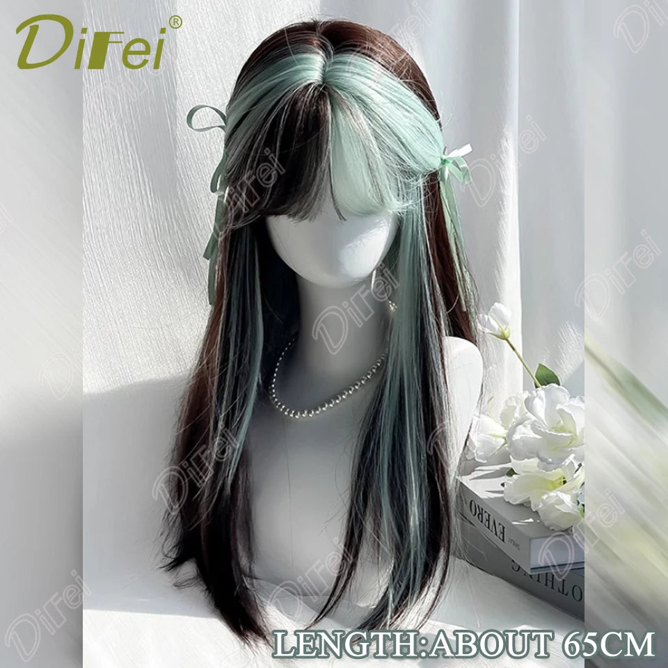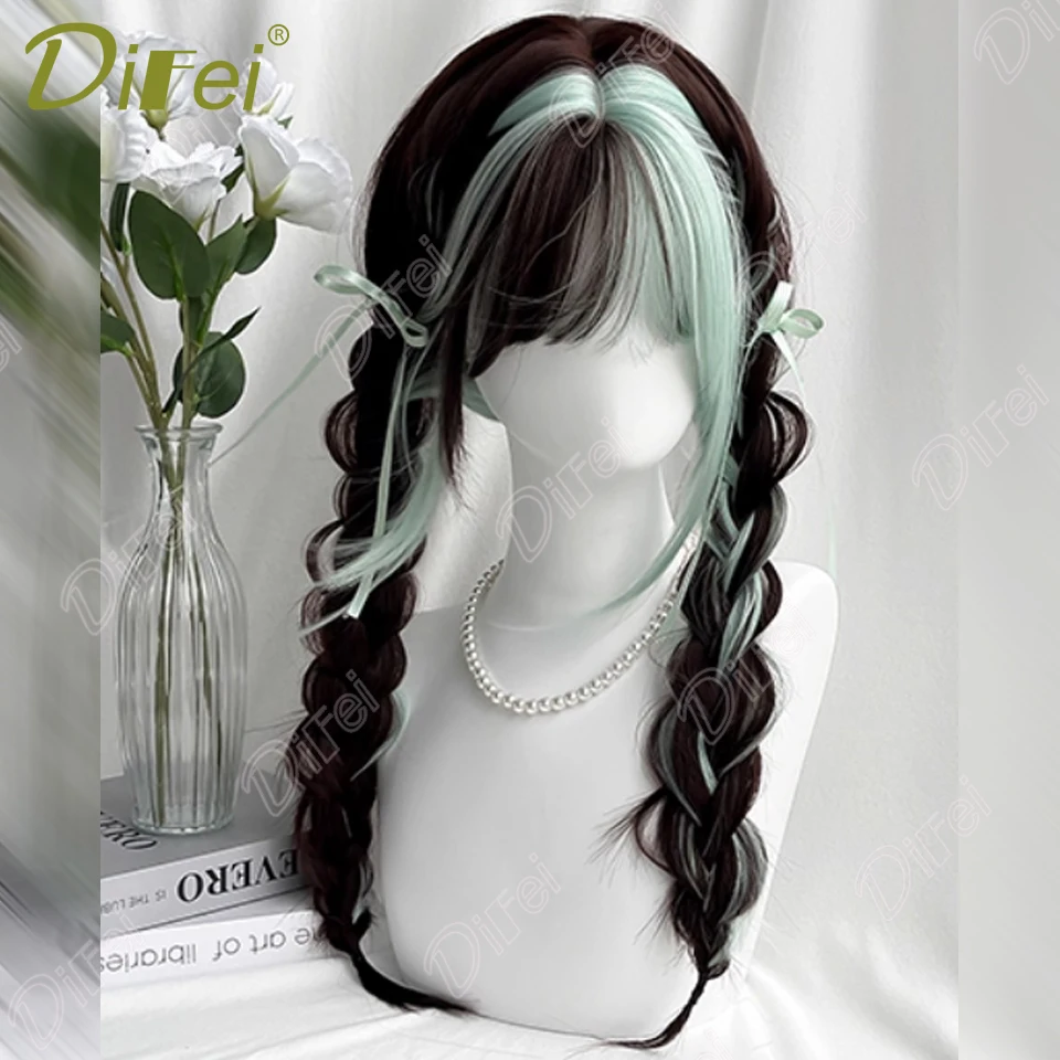 Denna mintgröna lolita-peruk på ca 66 cm är perfekt för dig som vill ha en färgstark men samtidigt stilren look. Med sin raka design och mjuka lugg ger den en söt och modern känsla – perfekt för cosplay, festivaler eller som en unik vardagsdetalj.