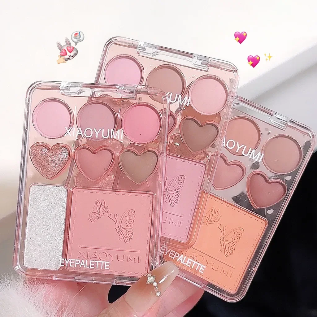 Hjärtformad 8-färgs ögonskuggspalett med rouge & highlighter