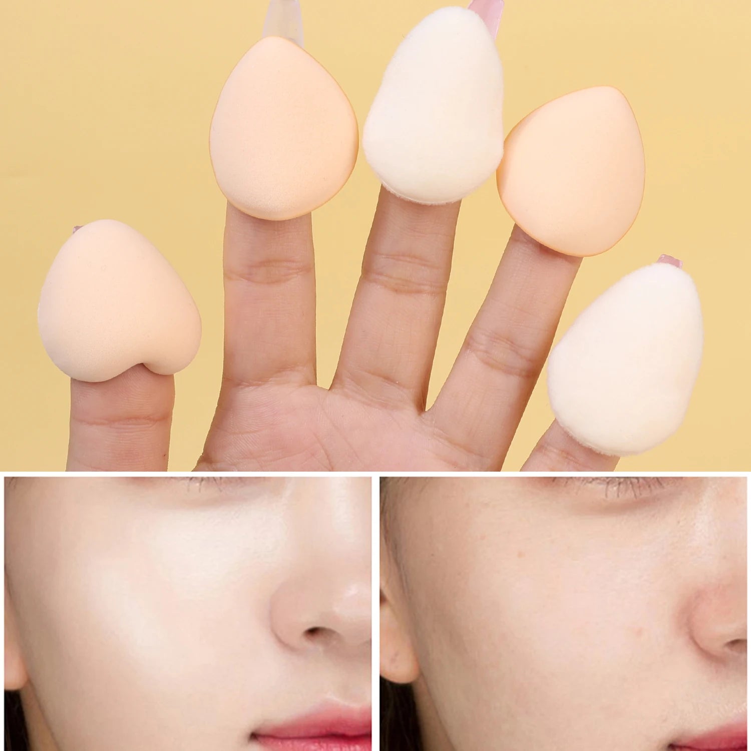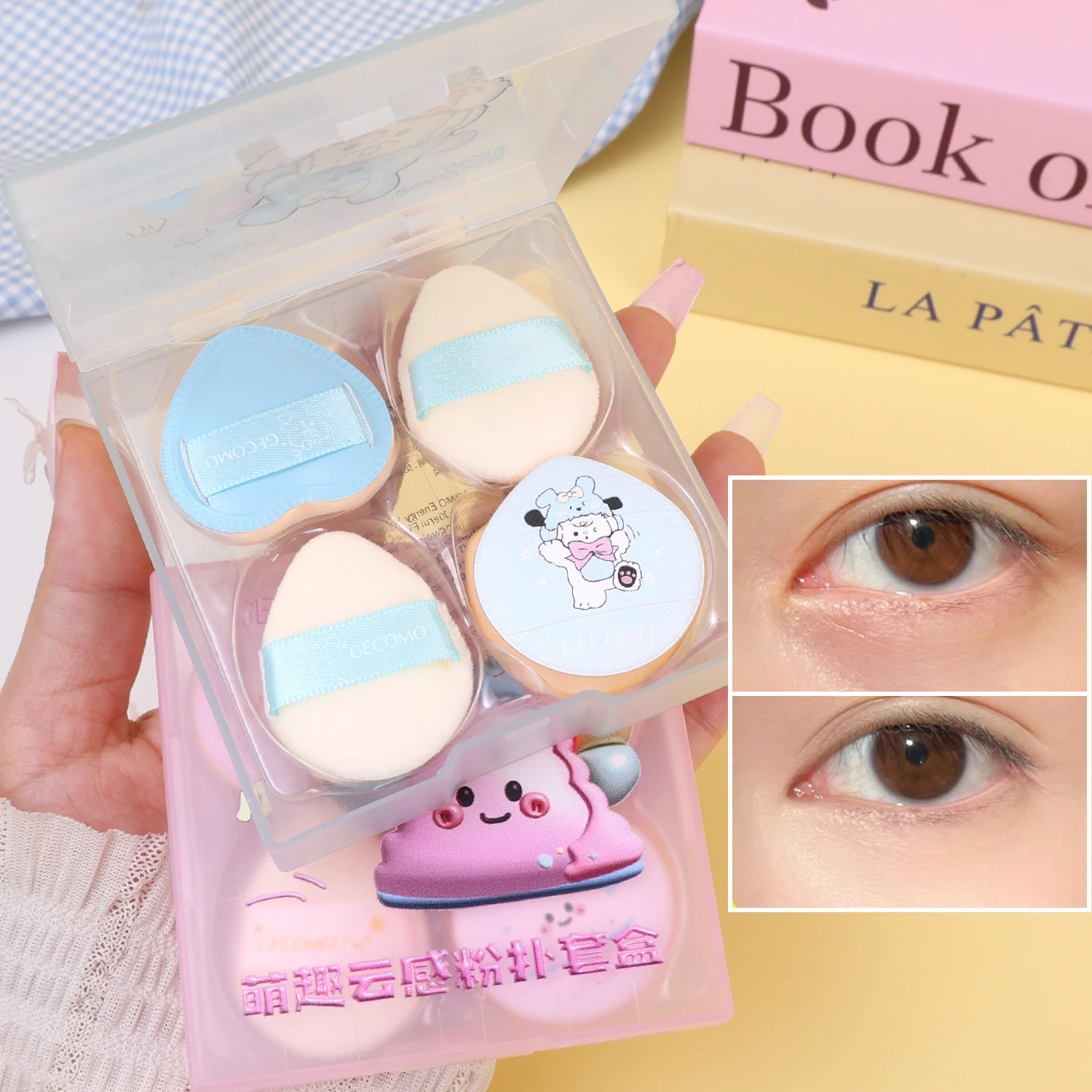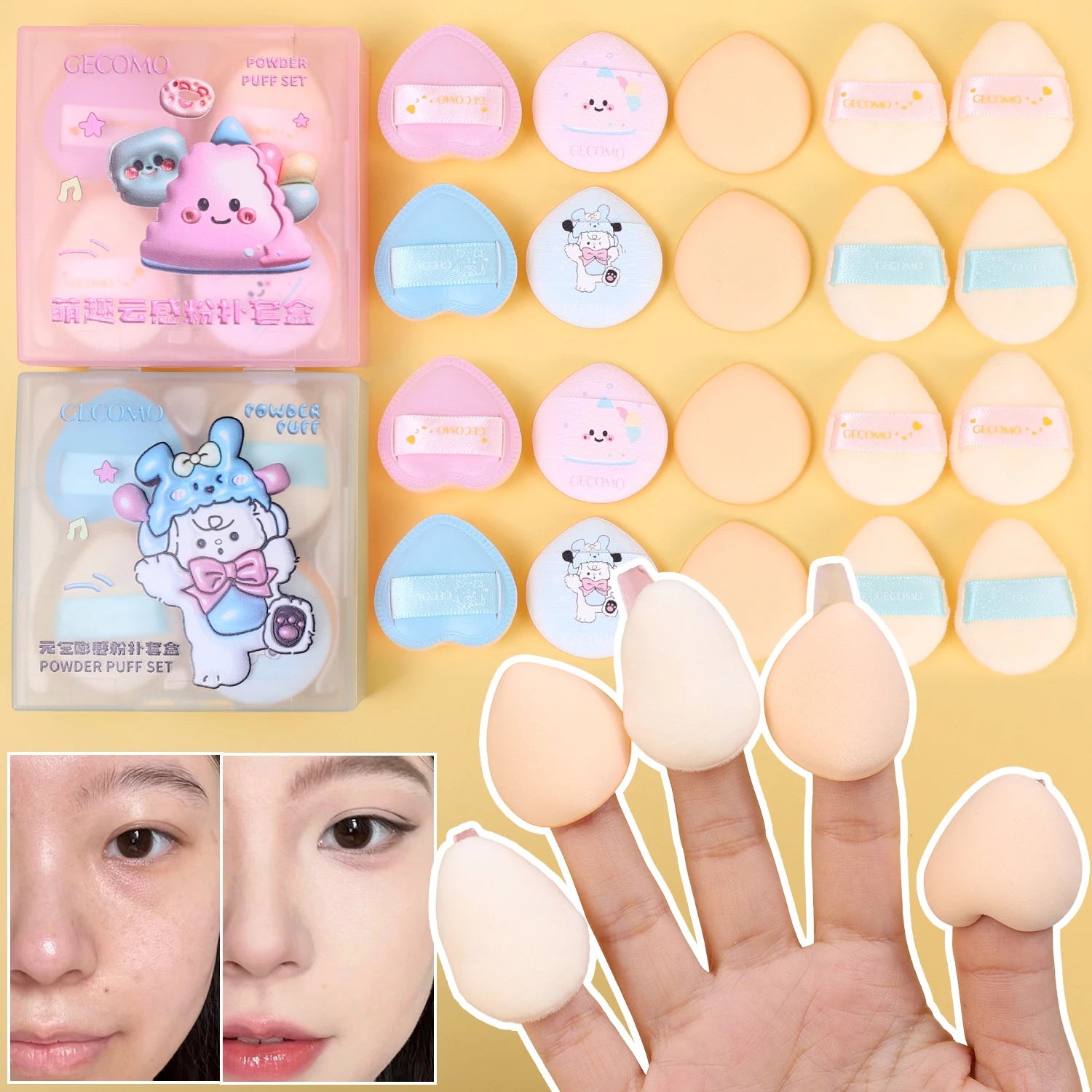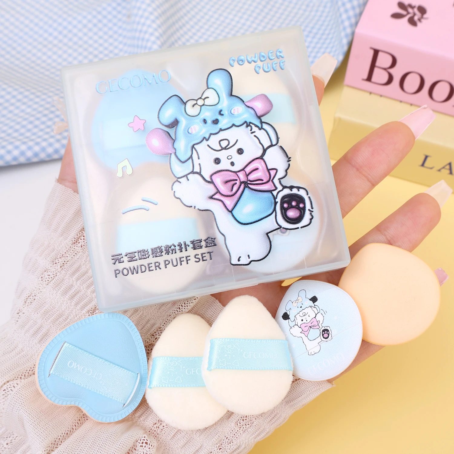 Cute Velvet Powder Puff Set – 5 st mjuka sminksvampar i box för foundation, blush & highlighter
