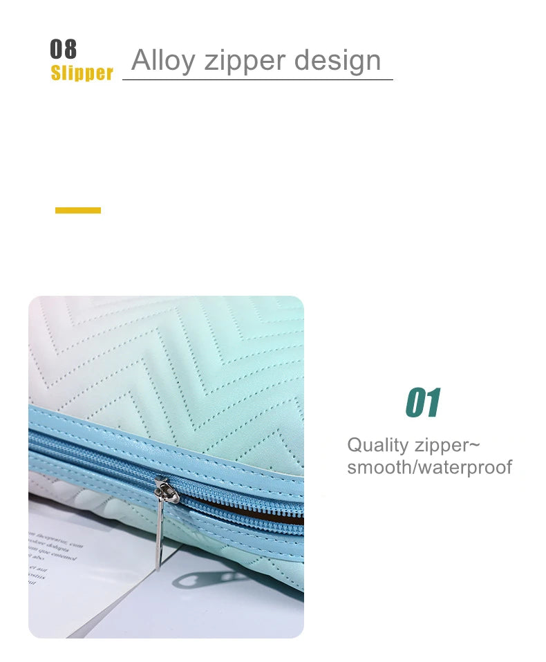 Den här pastellfärgade sminkväskan är lika söt som den är praktisk – perfekt för att förvara allt från läppglans och borstar till små speglar och handkräm. Den glansiga PU-ytan ger en lyxig känsla och de mjuka färgerna (blå, rosa, lila) gör den till ett måste i varje kawaii-samling.